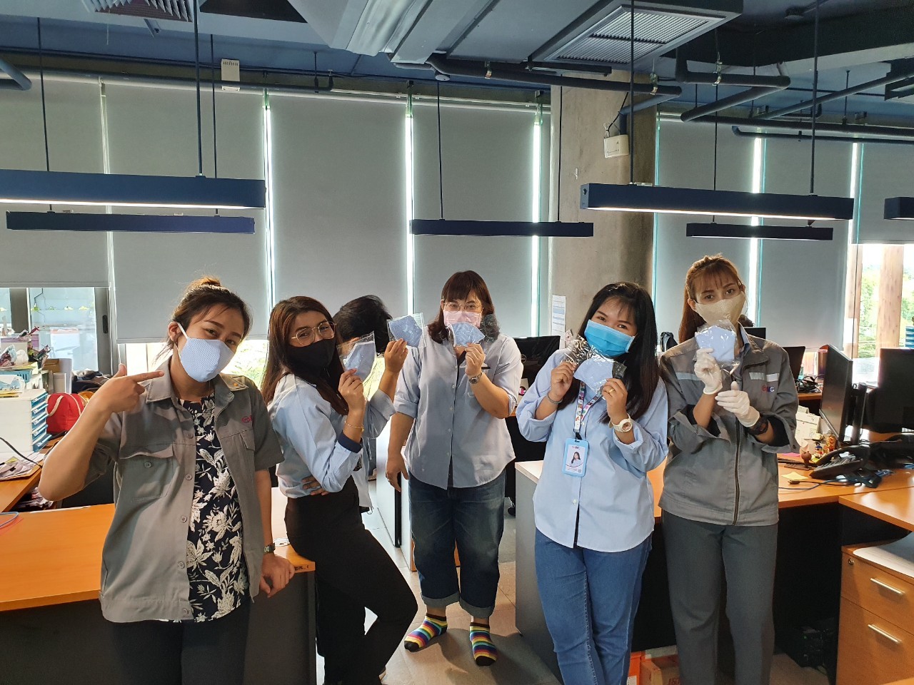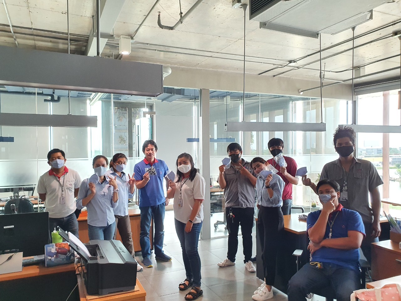 ด้วยการแจกหน้ากากผ้า เพื่อให้พนักงานใช้ป้องกันเชื้อไวรัส Covid - 19